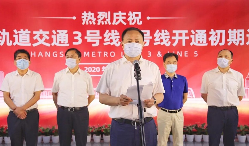 ▲長沙市委副書記、市長、湖南湘江新區黨工委書記鄭建新宣布長沙地鐵5號線正式載客初期運營