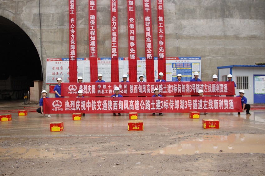 旬鳳高速土建3標(biāo)位于陜西省彬州市境內(nèi),是旬邑至鳳翔高速公路2020年通車計(jì)劃中重點(diǎn)構(gòu)成部位。項(xiàng)目正線全長8.674km,其中隧道工程長度4.208km,占比48.5%。本次貫通的侍郎湖3號(hào)隧道左線長2.312km,為標(biāo)段內(nèi)最長隧道,也是目前旬鳳高速已貫通的最長隧道。