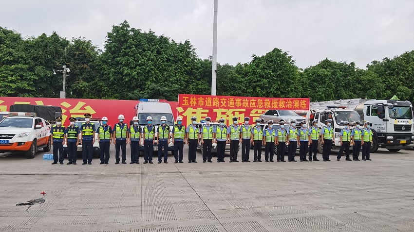 此次演練活動,共出動路政巡查車4輛、警車8輛、消防車12輛、120急救車1輛、養護車1輛,施救車1輛、救援人員共130余人。