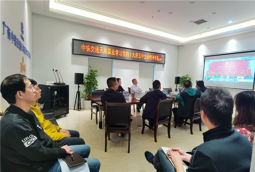 2020年10月26日至29日,中國共產(chǎn)黨第十九屆中央委員會第五次全體會議在北京召開,中央委員會總書記習近平作了重要講話。黨的十九屆五中全會閉幕后,中鐵中南區(qū)域總部(中鐵交通)迅速組織上下兩級學習黨的十九屆五中全會精神,通過集中學習中國共產(chǎn)黨第十九屆中央委員會第五次全體會議公報、共同觀看中共中央舉行的黨的十九屆五中全會精神新聞發(fā)布會等形式,在全公司范圍內(nèi)掀起了學習大熱潮。