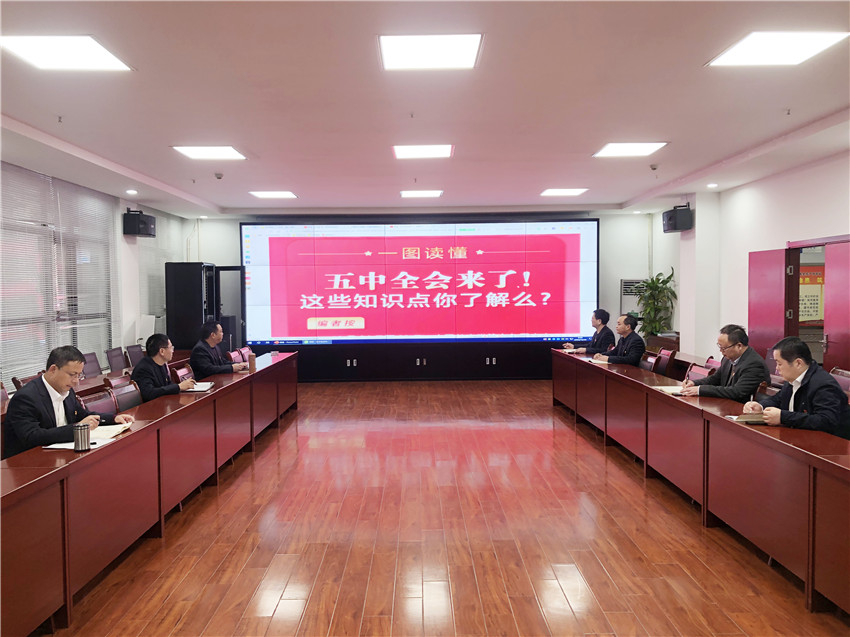 富硯公司組織干部職工通過黨工委中心組集中學習、觀看直播等形式,學習黨的十九屆五中全會精神相關(guān)內(nèi)容。