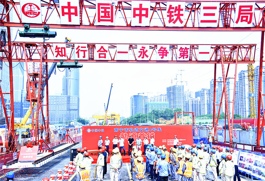 11月23日,中國中鐵參建的南寧市軌道交通4號線一期工程首通段正式開通試運營,標志著南寧市軌道交通現已初具規模、南寧市軌道交通邁入“井字形”線網時代。在4年多的建設周期中,中國中鐵南寧軌道交通4號線02標工程突破南寧軌道交通史上多項記錄,中國中鐵為南寧完善線網運營構架、提高線網可達性、推動城市緩堵保暢、引導綠色出行作出了重大貢獻。