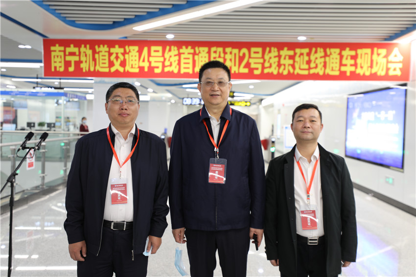 上午9時15分,通車儀式在南寧地鐵4號線體育中心東站舉行,中鐵中南區域總部(中鐵交通)總經理譚世俊,中鐵中南區域總部(中鐵交通)副總經理陳戈,中鐵廣西軌道交通指揮部、中鐵各參建單位建設者參加儀式并見證開通。