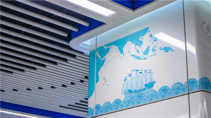 受此啟發,貫穿中國(廣西)自由貿易試驗區——五象新區的南寧地鐵4號線,積極落實“絲路新篇”主題,中國中鐵嚴格按照設計理念規范施工,充分展現了海上絲綢之路的特色元素、體現了南寧“一帶一路”門戶的商貿文化特色、突出了“現代、簡潔、時尚”的設計風格。
