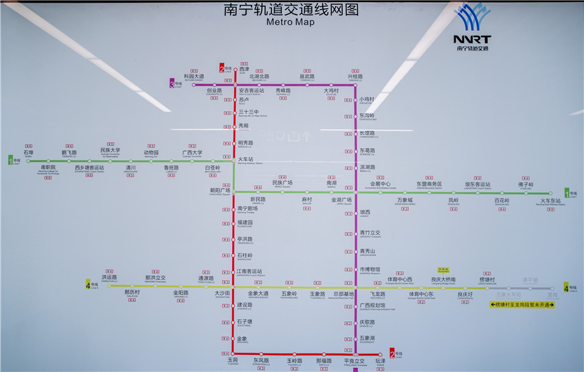南寧地鐵4號線是南寧軌道交通線網中東西向的骨干線,與已開通的1、2、3號線組成“井字形”軌道交通骨架,標志著南寧市軌道交通現已初具規模。線路西起洪運路站,經洪歷路、那洪大道、五象大道、聯合路到達龍崗站,全長24.6km,共設19座車站,首通段開通洪運路站至楞塘村站共16座車站。
