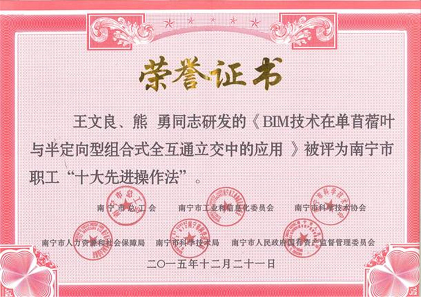 據悉,南寧市沙井—南站立交工程設計施工過程中,采用諸多先進理念和技術創新逐一攻克了項目重難點問題。一是突出綠色環保理念,對橋下地面進行空間地形統籌設計,減少土方量以及橋梁和擋土墻數量;二是采用海綿城市設計技術與景觀綠化相結合,排水系統先進,在立交中心區域首次設置調蓄池,以平抑雨季排水高峰流量,與一系列排水措施組合,有效消除原有內澇問題;三是施工過程中組織良好的立交地面交通系統,采用了新型橋梁造型設計和施工工藝,針對設計施工過程中必須保留原有鐵路橋、高壓電塔要求,施工單位采用主線分離方式,在沙井大道東側另辟新主線下穿既有鐵路,充分利用既有鐵路橋下舊橋孔,將其改造為單向通行,一舉多得;四是采用多種施工新技術,并開展技術創新,基于BIM技術的智能化研究在市政橋梁建設中的應用和工程示范,對今后類似工程施工具有很高的指導意義。