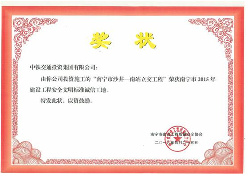 南寧市沙井—南站立交開通初期,橋梁主體和附屬工程質量好、形象美、功能優、綠色環保,切實貫徹了環境保護與綠色設計理念,立交造型線條流暢、景觀優美宜人,體現了“綠城”南寧的城市風貌,受到社會各界的廣泛認可和稱贊。