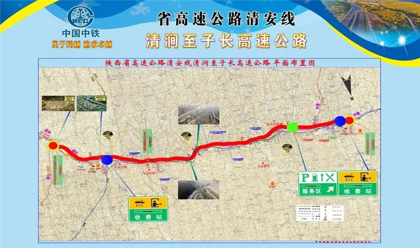清澗至子長高速公路是陜西省高速公路網規劃中清安線的重要組成部分,是與已通車運營的綏延主線(綏德至延川)打包捆綁的陜西省第一個高速公路PPP項目。項目起于清澗縣城以北的西賀家溝,設清澗北樞紐立交與綏延高速公路相接,終點在吳家坪東設子長東立交連接線接G340,路線長度約30公里,采用雙向四車道高速公路技術標準,設計速度80公里/小時,全線設互通立交3處,服務區1處,收費站2處。