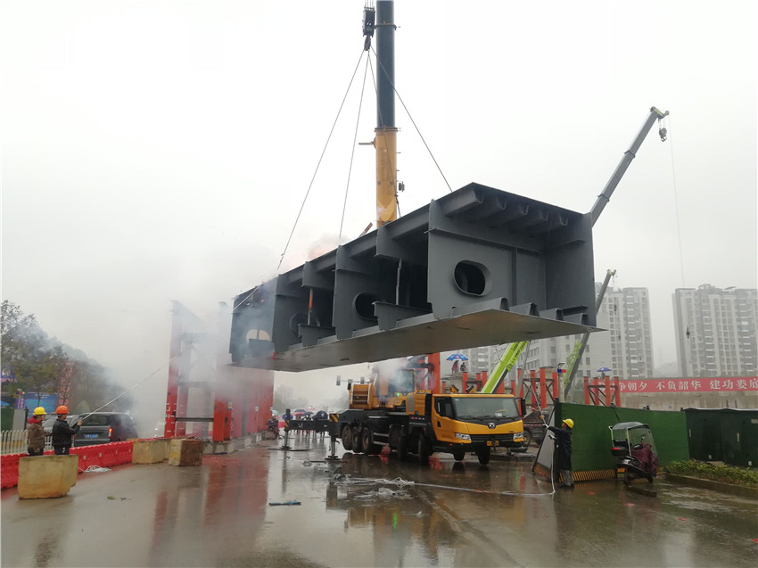 華星路立交橋全長158米,橋寬25米,共需架設鋼箱梁88片,梁重25噸,采用兩臺220噸吊車吊裝架設。華星路立交橋建成后將成為婁底市首座立交橋,成為婁底交通史上的新地標,為搭建立體交通體系、滿足東南部快捷通行需求、完善區域路網起到關鍵性作用,對推動沿線資源開發、促進產業發展、基礎設施建設具有重要意義。