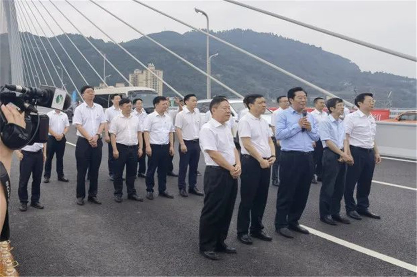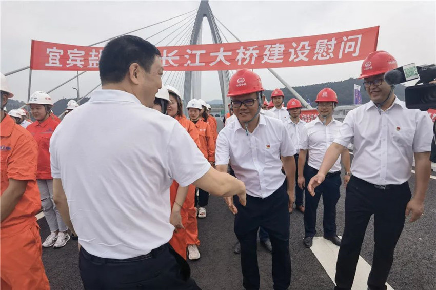 7月1日中午12時,成達(dá)公司打營盤山隧道及連接線提前開放交通試運(yùn)行,宜賓市委書記劉中伯,市委副書記、市長杜紫平一行對項(xiàng)目建設(shè)者們進(jìn)行了現(xiàn)場慰問。