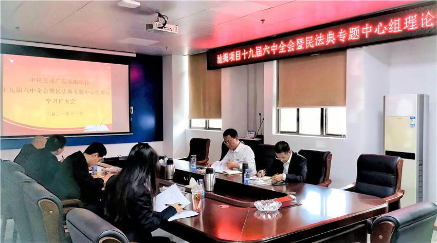 汕揭項目召開專題會議,組織黨工委理論學習中心組成員及黨支部全體黨員集中學習黨的十九屆六中全會精神。