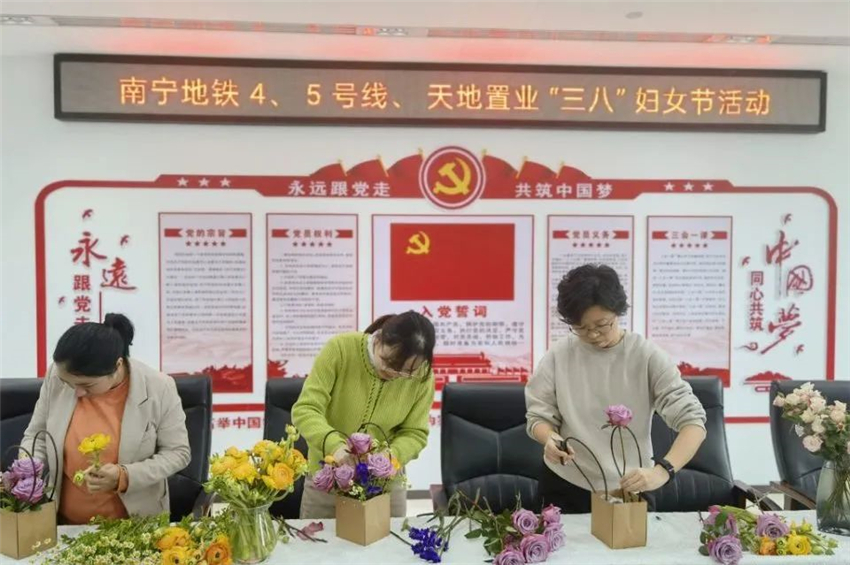 南寧地鐵5號(hào)線工會(huì)工委以“享悅時(shí)光,韻優(yōu)雅女性”為主題開(kāi)展慶祝“三八”婦女節(jié)活動(dòng),組織全體女職工開(kāi)展花藝DIY及形象提升培訓(xùn),向廣大女職工送上節(jié)日祝福,讓廣大女職工在活動(dòng)中感受到獨(dú)立、自信和優(yōu)雅的自己,度過(guò)了一個(gè)美麗和諧、快樂(lè)溫馨的節(jié)日。