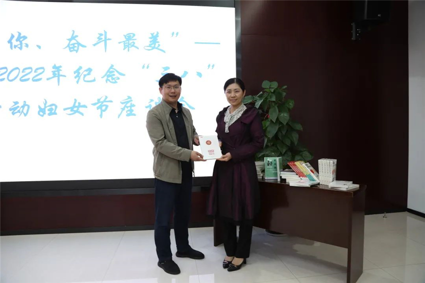 座談會(huì)上,李云峰為主會(huì)場(chǎng)參會(huì)人員發(fā)放了書(shū)籍,集團(tuán)公司黨群工作部部長(zhǎng)宣讀了《關(guān)于表彰2021年度先進(jìn)女職工集體、個(gè)人和女工工作先進(jìn)個(gè)人的決定》,主會(huì)場(chǎng)參會(huì)女職工依次作了交流發(fā)言。