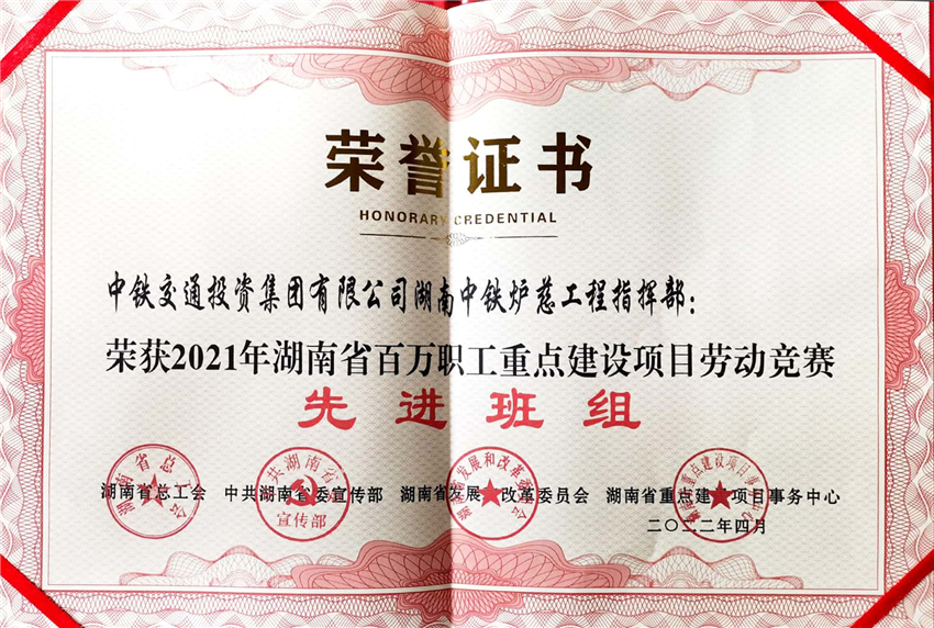 4月29日上午9時,湖南省慶祝“五一”國際勞動節暨先進集體先進個人表彰大會在長沙召開。爐慈桑龍項目共摘得5項“助力十四五  建設新高地”湖南省百萬職工重點建設項目勞動競賽榮譽:爐慈指揮部、桑龍TJ5標項目部榮獲先進班組稱號,項目公司陶新華、劉芳和爐慈TJ1標項目部董李軍榮獲先進個人稱號。