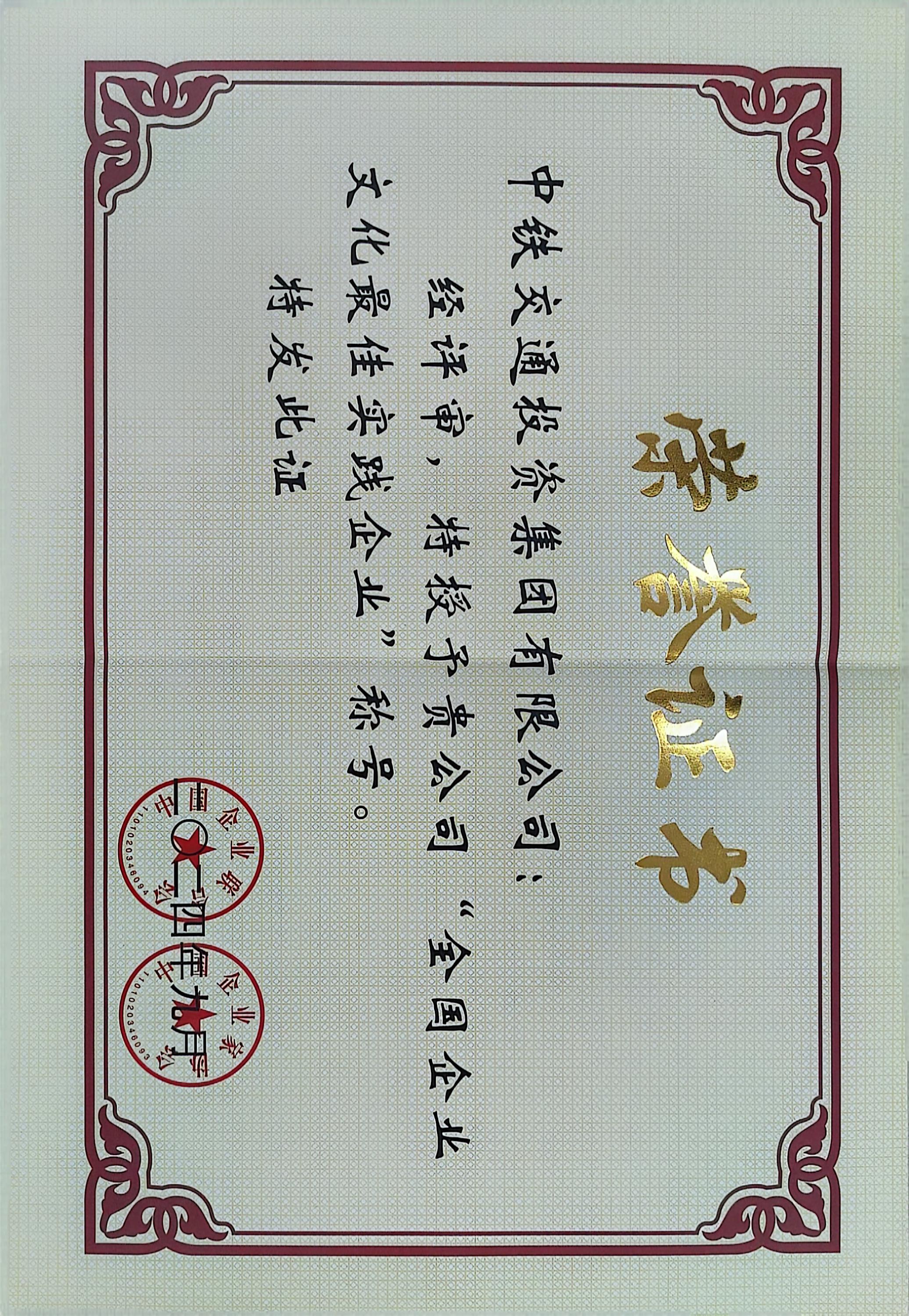 中鐵交通投資集團有限公司榮獲“全國企業文化最佳實踐企業”稱號